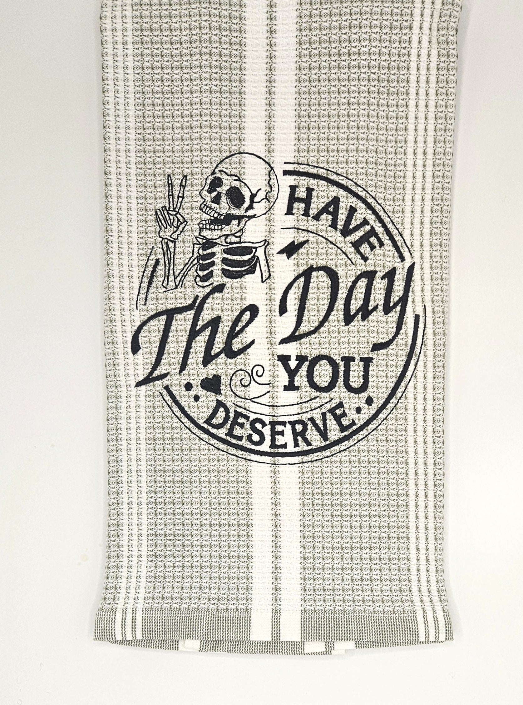 Be the first to review “Have The Day You Deserve Embroidered Kitchen Towel”